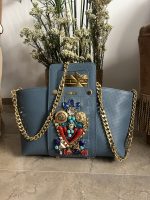Sac en cuir avec face interchangeable brodée en cristal et pierres semi précieuses