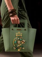 Sac en cuir avec brodée en cristal et pierres semi précieuses
